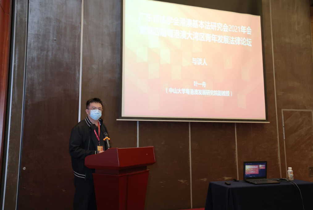 (图为研究会秘书长、深圳大学港澳基本法研究中心副主任、深圳大学法学院副院长叶海波在闭幕式发言)