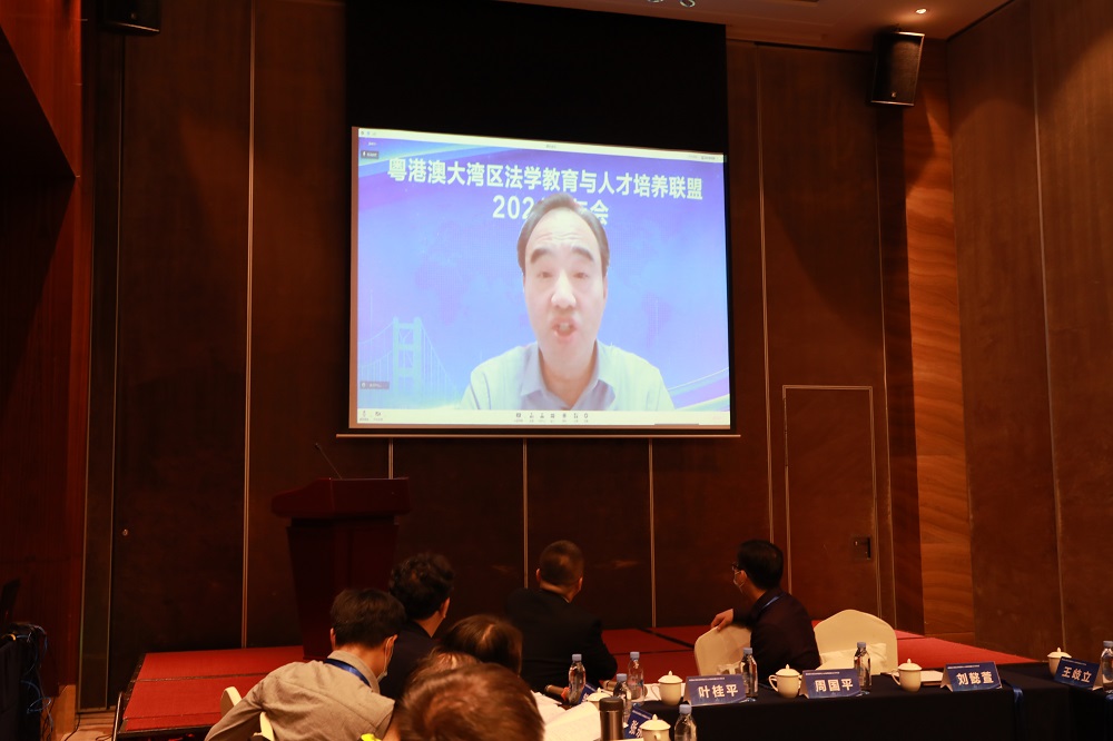 广东省教育厅副厅长朱超华以视频形式发表讲话。他首先肯定了联盟成立以来取得的成绩。面对全球疫情,他认为我们应创造性地开展工作,共建共享粤港澳大湾区法学教育与人才培养平台:一是打造法治建设平台,推动港澳法律研究,深化内地与港澳法律比较研究,推动大湾区建设重大法律问题研究,特别是共建湾区现在最紧迫的法律规则和机制衔接对接问题;二是打造法律人士交流平台,要扩大法学师生的参与,促进三地法律人士之间的交往;三是打造法学教育平台,建立法学教育交流协作机制,发挥各自的教学科研优势,共同开发跨域法律人才培养课程体系;四是打造法律人才高地,通过合作培养等方式,进一步提高大湾区法学专业的人才培养质量。