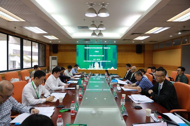 4月22日,“香港国安法与本地法律的衔接”专题研讨会在深圳大学成功举办。本次会议由全国人大常委会港澳基本法委员会研究室指导,深圳大学港澳基本法研究中心、广东省法学会港澳基本法研究会主办,深圳大学港澳及国际问题研究中心协办。来自全国人大常委会港澳基本法委员会研究室、广东省人民政府港澳事务办公室、香港大律师公会、香港城市大学法律学院、中国社会科学院法学研究所、中国人民大学法学院、复旦大学法学院、中国政法大学法学院、武汉大学法学院、湘潭大学法学部、中山大学法学院、深圳大学等单位的四十多名专家学者和研究生参加会议。