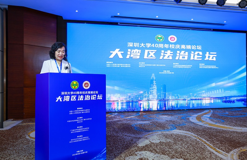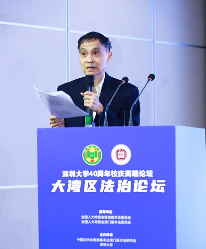 2023年6月17-18日,深圳大学40周年校庆高端论坛——大湾区法治论坛在深圳隆重举行。本次论坛由全国人大常委会港澳基本法委员会指导,中国法学会香港基本法澳门基本法研究会和深圳大学共同主办,广东省法学会港澳基本法研究会、深圳大学港澳基本法研究中心承办,深圳市法学会港澳法律研究会、深圳大学港澳及国际问题研究中心协办。