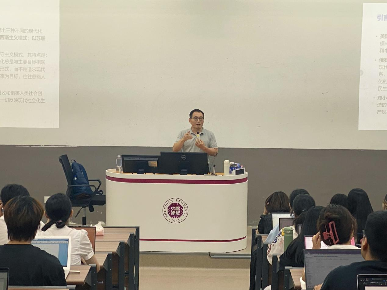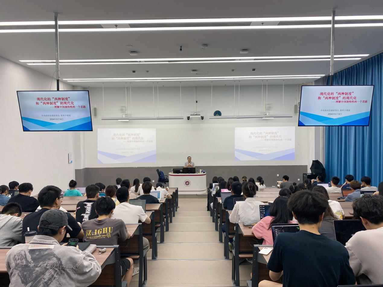 此次讲座,靳环宇教授主要围绕“两种制度”的现代化、“两种制度”融合下的民主革命、“两种制度”竞合下的经济建设、“一国两制”基本方略下的中国式现代化四个方面展开研究成果分享。他在讲座中指出:1.围绕强国建设、民族复兴,围绕实现中国式现代化,中央从来都从国家民族整体利益(根本利益)和长远发展(长远利益)角度来考虑、布局资本主义和社会主义的关系问题(其内部就是港澳台的统一繁荣问题、外部就是人类命运共同体问题),这是党治国理政的核心性问题;2.“一国两制”不仅是实现国家最终统一的最佳方案,也是保持国家一些特殊地区长期繁荣稳定的最佳制度安排,还是推动中国式现代化的重要制度动力,这样好的制度必须长期坚持下去;3.在认识国家和治理国家的过程中,一定要有“两种制度”意识,一定要树立既能把实行社会主义的内地建设好、也能把实行资本主义制度的香港、澳门、台湾建设好的坚定信心,还要树立以中国特色社会主义统筹协调引领世界资本主义共同建设人类命运共同体责任担当意识;4.社会主义当中的资本主义元素是把双刃剑,其积极面对内既可补充完善社会主义制度,对外也可成为社会主义走向和引领世界的桥梁;其消极面对内可能侵蚀扰乱社会主义意识形态,对外也可能引来外部势力对中国内政的干涉干扰;但是社会主义兼容资本主义在中国(协同资本主义在世界)将是一个不可逆的长期过程。