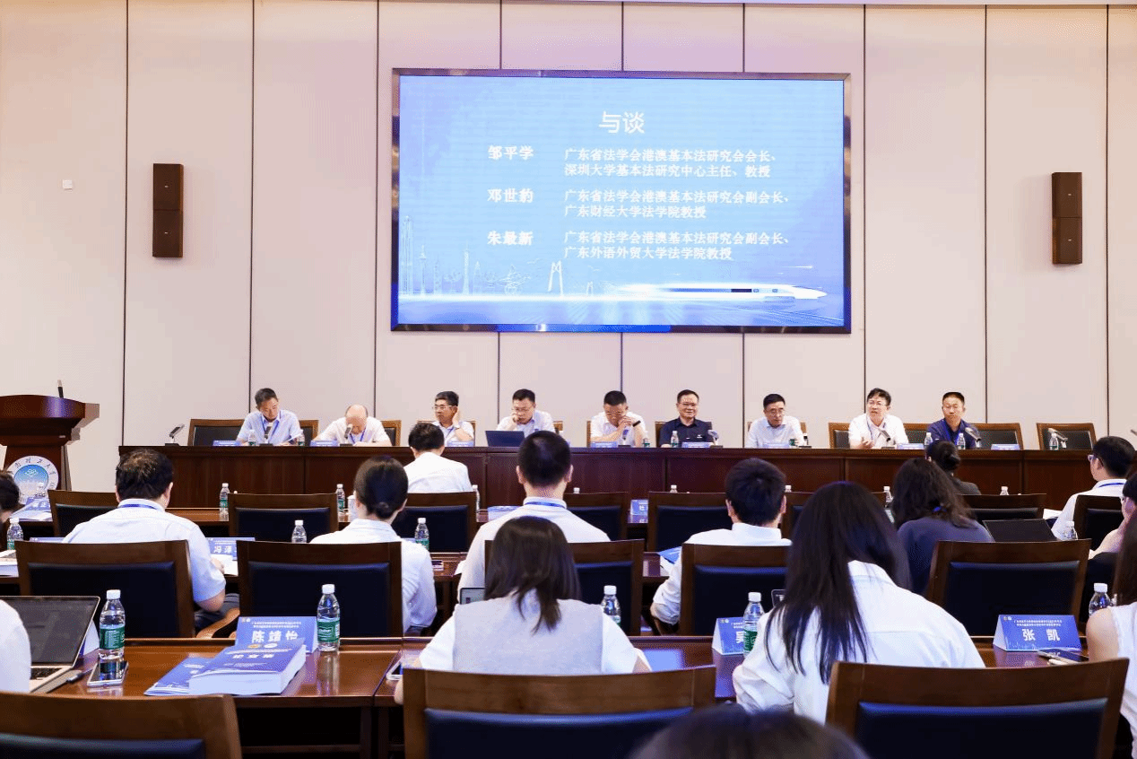 主题发言结束后,研究会会长、深圳大学基本法研究中心主任邹平学教授,广东省法学会港澳基本法研究会副会长、广东财经大学法学院邓世豹教授,广东省法学会港澳基本法研究会副会长、广东外语外贸大学法学院朱最新教授先后就主题发言进行与谈。