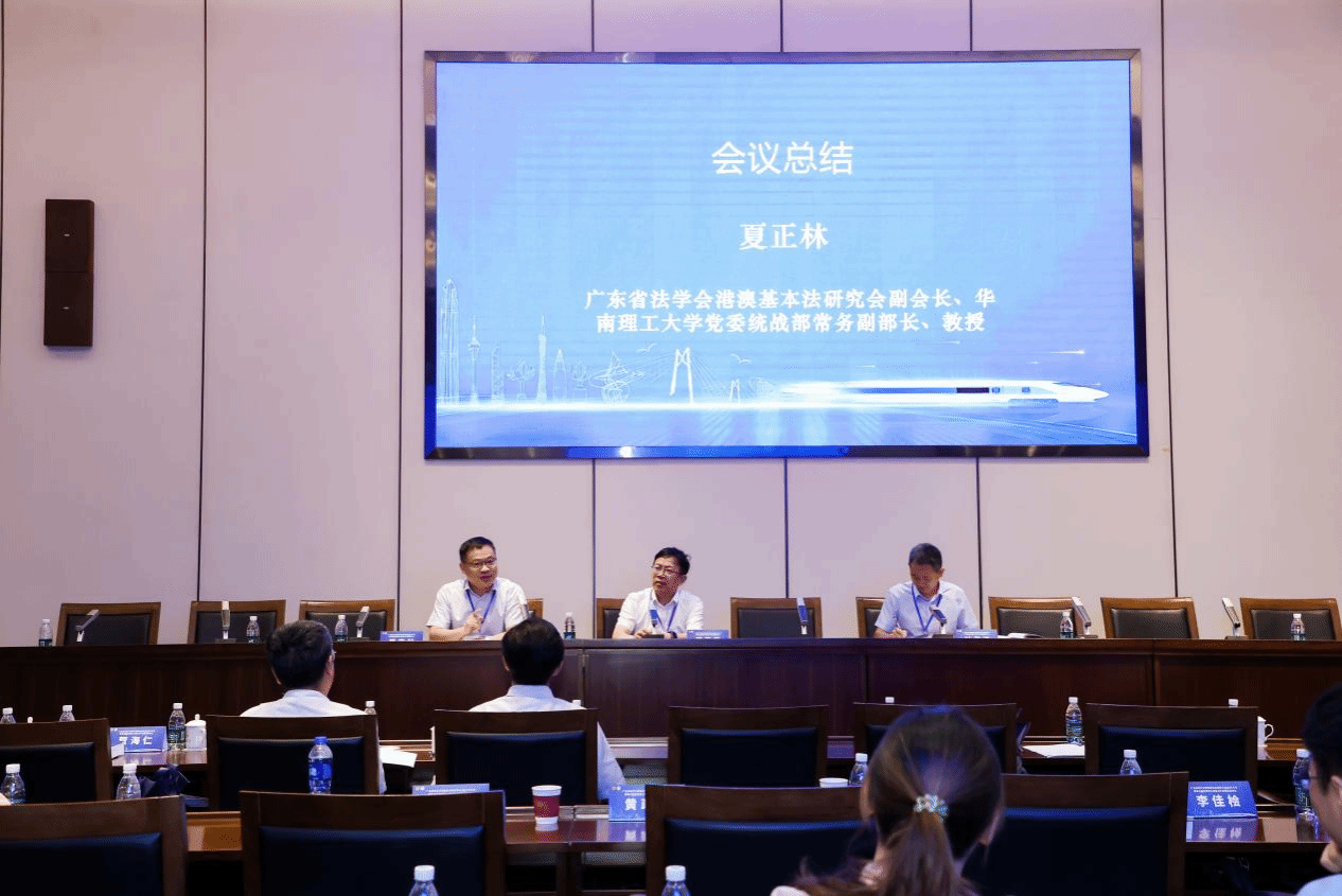 各单元研讨结束后,论坛闭幕式于17:15-17:30举行,由研究会秘书长、深圳大学港澳基本法研究中心副主任、法学院副院长叶海波教授主持,研究会副会长、华南理工大学党委统战部常务副部长夏正林教授作总结发言。夏正林教授在总结发言中指出,本次研究会汇聚了来自广东、澳门、北京、山东等全国多地的与会人员,呈现出广泛的地域覆盖与多元的年龄结构,体现出跨地区、跨代际的学术交流特色。在研究成果方面,今年提交的论文不仅延续了对粤港澳大湾区建设等基本法问题的传统关注,更展现出研究视野的不断拓展与深化。一批青年学者聚焦低空经济、民营企业出海等新兴领域,反映出大湾区研究正逐步走向精细化与前沿化,呈现出可喜的学术发展趋势。同时,他还在总结发言中提出了“大湾区学”的概念,该概念突破了单一的法学范畴,为后续研究拓展了空间。