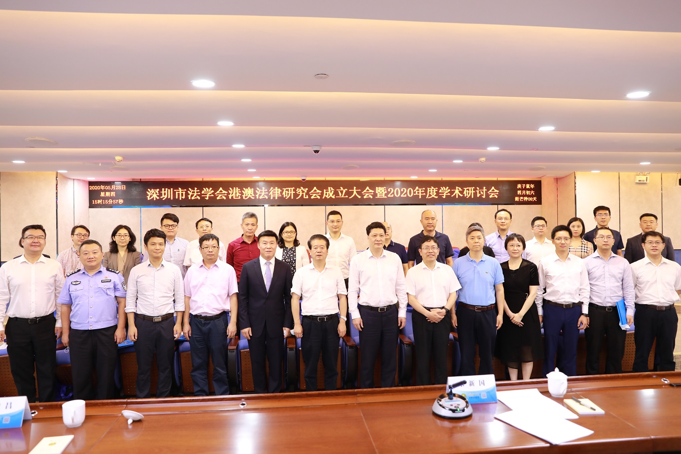 5月28日下午,深圳市法学会港澳法律研究会成立大会暨2020年度学术研讨会在在中国法治论坛深圳基地召开。深圳市委常委、政法委书记,市法学会会长余新国同志出席并讲话,深圳市委政法委常务副书记、市法学会常务副会长梁增昌同志主持会议。市、区党委、政府、政法各部门、法学教育和研究机构推荐的港澳法律研究会理事参加。出席理事审议表决通过了《深圳市法学会港澳法律研究会章程》,选举产生了港澳法律研究会会长和副会长,其中邹平学教授当选会长,深圳前海蛇口自贸区人民检察院副检察长、二级高级检察官韩友营等11位同志当选副会长。