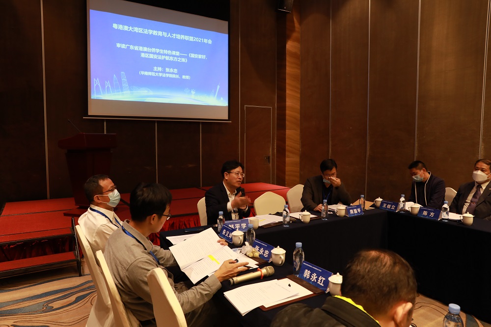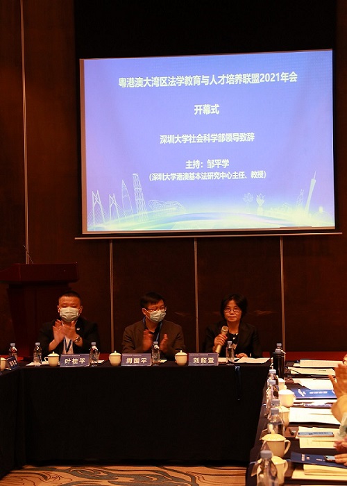11月28日至29日,粤港澳大湾区法学教育与人才培养联盟2021年会在深圳顺利举行。来自广东省教育厅、广东省司法厅、广东省法学会、香港大学、香港中文大学、澳门大学、澳门科技大学、澳门城市大学、中山大学、暨南大学、华南理工大学、华南师范大学、广东外语外贸大学、广东财经大学、广州大学、深圳大学等单位的参会代表40余人参加了会议。会议由粤港澳大湾区法学教育与人才培养联盟主办,深圳大学港澳基本法研究中心、深圳大学港澳及国际问题研究中心、港澳青少年宪法基本法深圳研修基地、广东省法学会港澳基本法研究会、深圳市法学会港澳法律研究会承办。