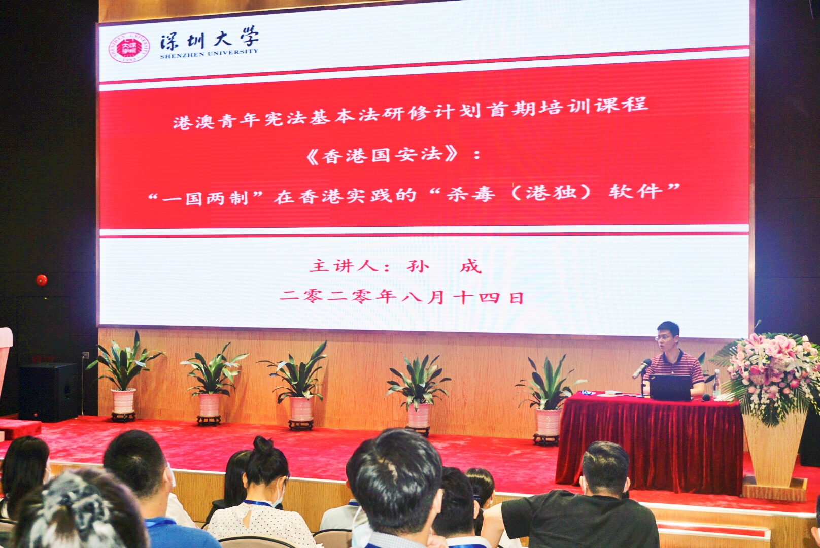 在港澳青少年宪法基本法研修计划首期培训班上,来自深圳大学港澳基本法研究中心的助理教授孙成以“‘一国两制’在香港实践的‘杀毒软件’”为题,深入浅出地为在场港澳青年代表上了一堂生动的《香港国安法》知识课,令参加培训的学员们更全面了解了《香港国安法》为“一国两制”及香港社会经济发展行稳致远提供强大支撑的重要意义。