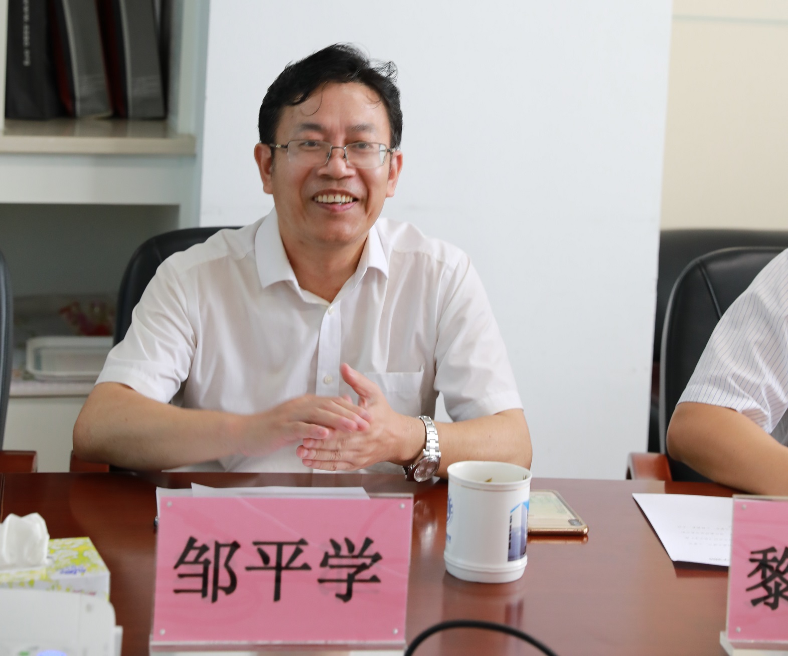 7月26日下午,广东省人民政府港澳事务办公室党组成员、副主任郑建民一行6人到中心调研指导工作,中心在深老师全体参加。