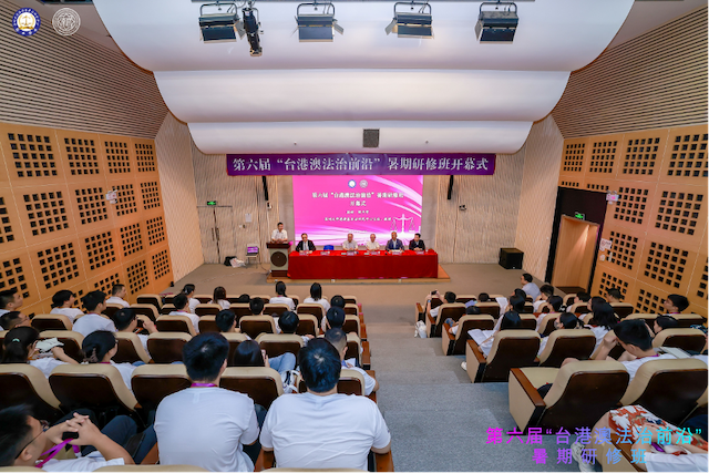 8月5日上午,第六届“台港澳法治前沿”暑期研修班开幕式在深圳大学粤海校区汇星楼报告厅隆重举行。开幕式由深圳大学港澳基本法研究中心副主任王千华教授主持,深圳大学港澳基本法研究中心主任邹平学教授、北京大学法学院饶戈平教授、深圳市中立法律服务社朱满成副秘书长、南开大学法学院台港澳法研究中心执行主任李晓兵副教授代表主办方和主讲嘉宾分别致辞。开幕式结束后,全体师生一起在汇星楼前合影留念。