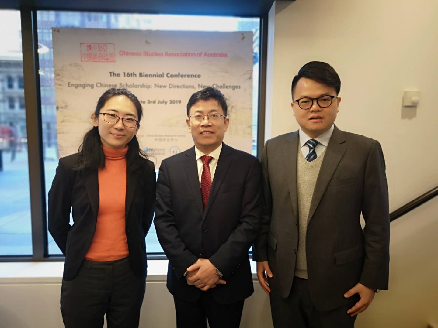 7月1日-3日,邹平学教授、黎沛文副研究员以及赵桃桃助理教授出席在墨尔本由拉筹柏大学(La Trobe University)举办的澳大利亚中国研究协会第16届双年会“对话中华学术-新方向·新挑战”国际学术研讨会。会议开幕式在拉筹柏大学墨尔本城市校区举行,拉筹柏大学校长Hon John Brumby致辞。有来自中国内地中国社会科学院、复旦大学、南京大学、南开大学、中山大学、同济大学、四川大学、山东大学、华东师范大学、上海大学、北京外国语大学、湖南大学、深圳大学、湖北大学、首都师范大学、西安交通—利物浦大学、广东外语外贸大学、扬州大学,中国台湾地区的台湾大学、亚洲大学、中正大学、政治大学、清华大学、彰化师范大学、中国文化大学、致理科技大學,香港大学、香港中文大学、香港理工大学、香港教育大学、香港恒生管理学院,以及美国西北大学、英国剑桥大学、俄罗斯国家科学院、加拿大阿尔伯特大学、加拿大不列颠哥伦比亚大学、德国汉堡大学、日本东京大学、日本京都大学,新加坡国立大学、南洋理工大学、印度尼赫鲁大学、韩国高丽大学、仁川国立大学、信韩大学、马德拉斯印度理工学院、马来西亚大学、菲律宾大学迪利曼分校、新西兰坎特伯雷大学大学、奥克兰大学、怀卡托大学,以及澳大利亚国立大学、墨尔本大学、悉尼大学、莫纳什大学、拉筹柏大学、皇家理工大学、新南威尔士大学、迪肯大学、格里菲斯大学、塔斯马尼亚大学、悉尼科技大学、斯威本科技大学、麦考瑞大学、阿德莱德大学、新英格兰大学、昆士兰大学、中央昆士兰大学、埃迪斯科文大学、西澳大学的学者约500多人参会,可谓盛况空前。除大会报告外,还有近20个平行分论坛,主题涉及宗教、哲学、经学、历史、考古、中国治理、文学、书写、西藏、台湾、香港、统一战线、一带一路、移民等诸多方面。