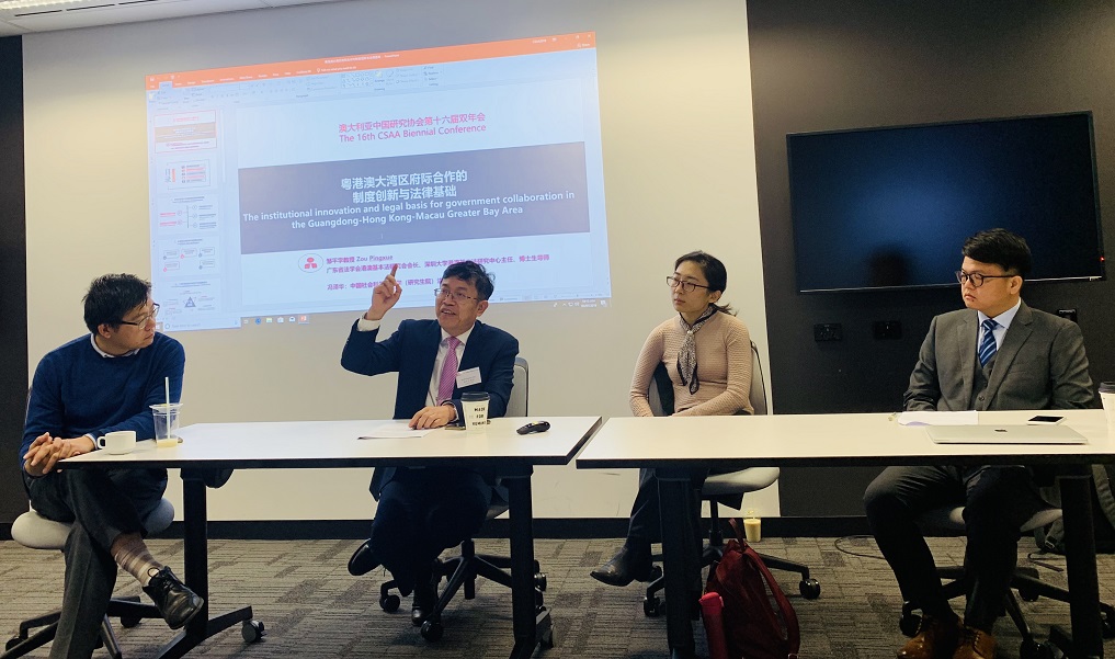 7月3日,我校三位参会学者在会议分论坛“China’s Regional Development: Collective Opportunity or Internal Competition”( 中国区域发展:集体机遇或内部竞争)作主题学术报告。分论坛由墨尔本大学亚洲研究院卓少杰高级讲师主持,邹平学教授、黎沛文副研究员以及赵桃桃助理教授分别做了题为“粤港澳大湾区府际合作的制度创新与法律基础”、“Think Tank Competition in China - A Case Study in the Pearl River Delta”以及“香港‘多元共治’社会治理模式对粤港澳大湾区建设的启示”的学术报告发言。在自由讨论环节,三位老师就相关问题与来自墨尔本大学、西澳大学、拉筹柏大学等高校的专家学者展开了深入交流,分论坛在热烈的研讨氛围中顺利结束。在三天会议期间,邹平学教授的新著《宪法在香港特别行政区的效力和适用》和其他部分与会学者的代表作在会议会场专辟的论著展区展示。
