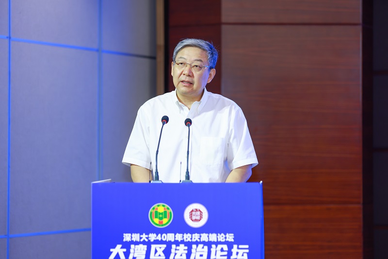 今年是深圳大学建校40周年,学校正在积极筹办校庆的各项活动,这次“大湾区法治论坛”也是校庆系列活动之一。希望借此机会,增进各位贵宾对深圳大学的了解,并为深圳大学的建设与发展提出宝贵意见和建议,为建设世界一流综合性大学集聚力量。