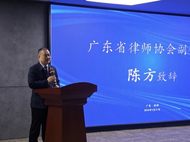 本次研讨交流会开幕式由广东省律师协会粤港澳大湾区工作委员会主任尹成刚主持,广东省律师协会副会长陈方致辞。