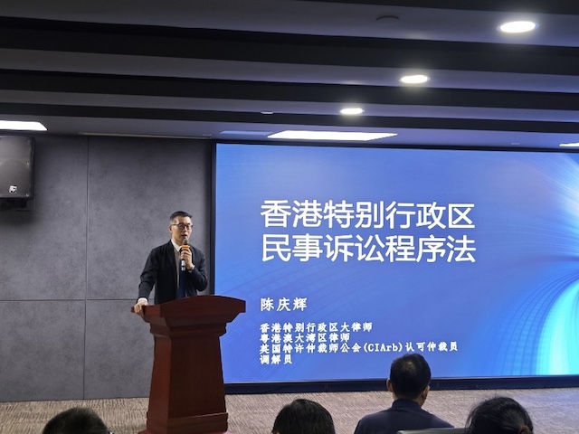 陈庆辉大律师在研讨交流会上的分享内容涵盖了香港特别行政区民事诉讼程序法的广泛议题,包括法律规则、实务指引、诉讼主体、文件处理、送达机制、文件披露、证人与专家证言、判决流程、上诉程序以及诉讼费用等关键环节。他不仅详细解释了各项规定的法律背景及现行法律条款,还结合实际案例生动展示了香港法律制度的特色与实践智慧。他指出,香港普通法系以其严谨的程序正义、高效的信息披露机制和国际化的视角,能够为粤港澳大湾区乃至全国的法治建设提供参考与借鉴。