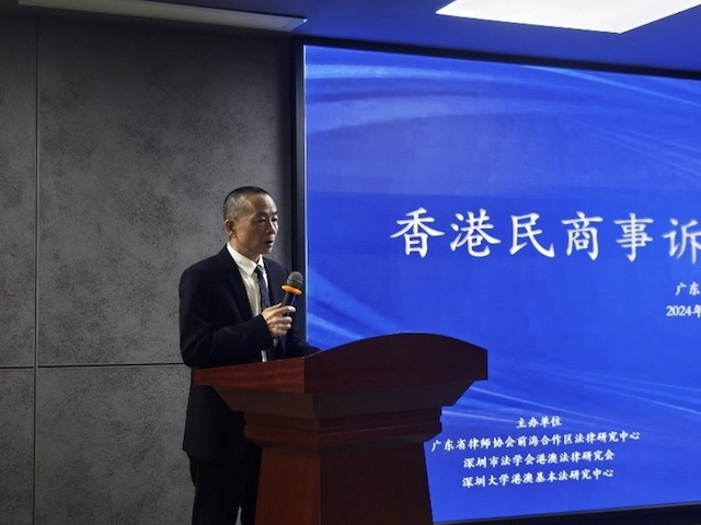 2024年5月11日上午,香港民商事诉讼案件研讨交流会在深圳市星级法治宣传教育基地——“中华传统法律文化共享空间”成功召开。本次研讨交流会由广东省律师协会前海深港现代服务业合作区法律研究中心(以下简称“广东省律协前海研究中心”)、深圳市法学会港澳法律研究会、深圳大学港澳基本法研究中心主办,广东省律师协会粤港澳大湾区工作委员会、深圳市律师协会港澳台法律专业委员会、深圳市律师协会福田区律师工作委员会国际与港澳台中心协办。来自广东省律师协会、深圳市法学会、深圳市政法委、深圳大学、深圳市律师协会的30名领导、专家和律师同仁参加活动。