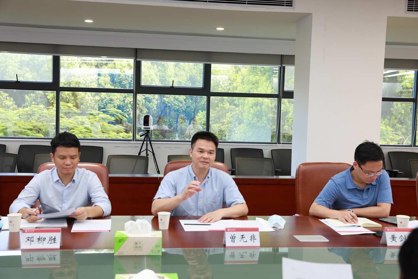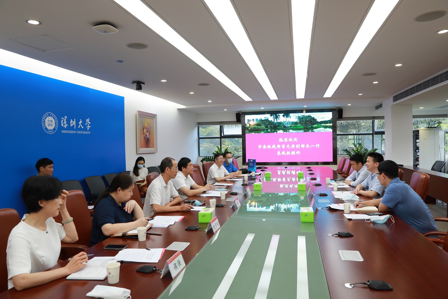 6月30日下午,深圳市委统战部副部长曾无非,港澳工作处处长黄剑峰、副处长邓柳胜一行三人到我校调研。学校党委副书记范志刚和党委组织部统战部、学生部、国际交流与合作部、港澳基本法研究中心等部门负责人与曾无非一行在汇元楼201会议室举行座谈,就深圳海外联谊会与深圳大学合作建立“港澳青少年宪法基本法深圳研修基地”(以下简称“研修基地”)相关事宜进行商讨。曾无非表示,深圳毗邻香港,作为社会主义先行示范区,在面向港澳开展宪法和基本法教育、国情教育方面有独特优势和先行示范的使命担当,希望能够依托深圳大学这个优质平台,合作搭建研修基地,积极开展港澳青年之间的各种交流活动。范志刚表示,能够与市委统战部合作,以海外联谊会和深圳大学的名义共建研修基地,是深圳大学的光荣任务,学校方面一定全力配合,具体由港澳基本法中心实施,校党委组织部统战部、学生部、国际交流与合作部等部门配合,建设好研修基地,增强港澳同胞的国家意识和爱国精神。宾主双方就研修基地的揭牌、建设计划、活动开展等展开了深入探讨和交流。